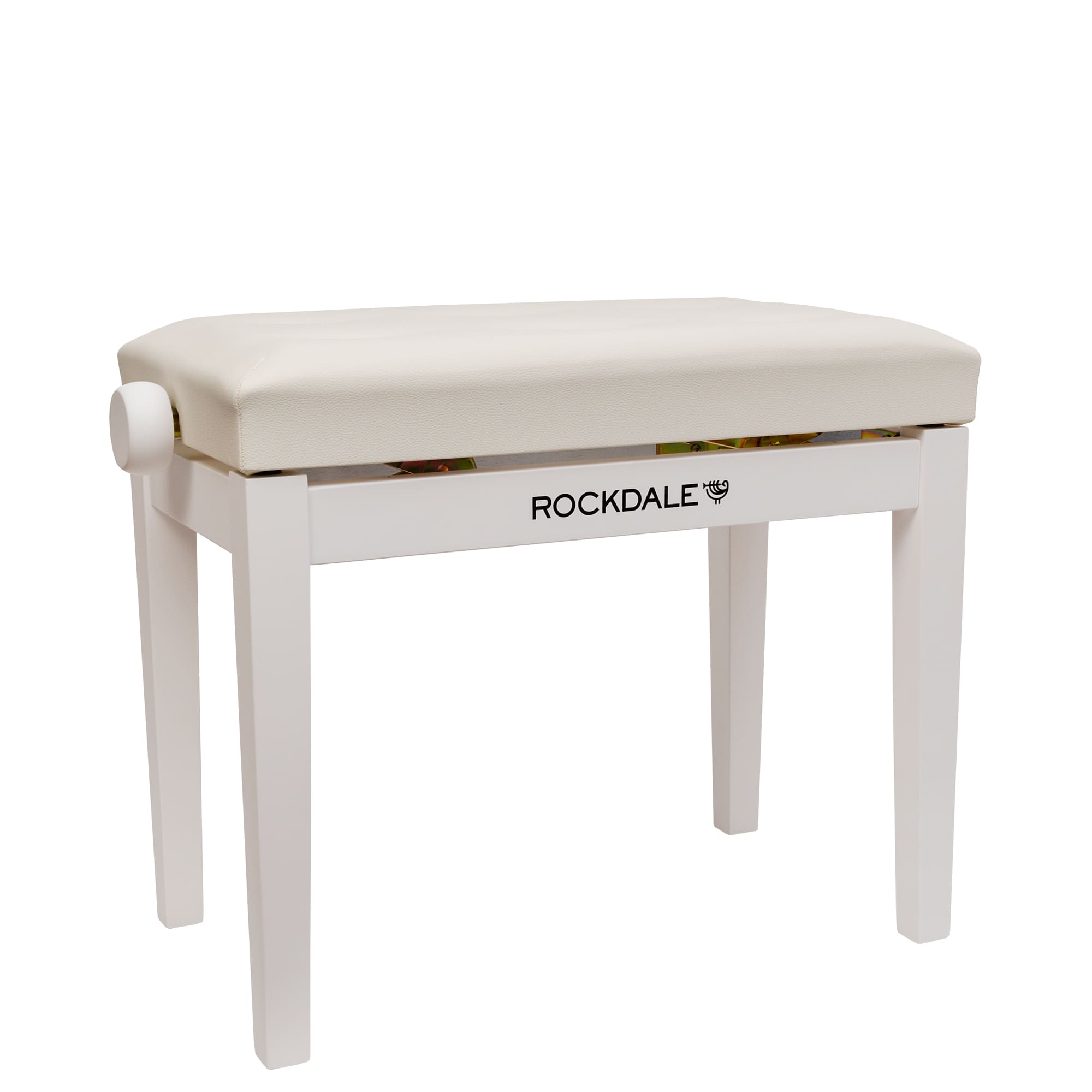 ROCKDALE RHAPSODY 130 WHITE удобная и прочная банкетка для пианиста с регулируемой высотой. Форма банкетки – традиционная прямоугольная, размер сиденья: 55 см х 33 см. Высоту можно настроить от 47 до 56 см. Прочные деревянные ножки позволяют устойчиво расположить банкетку на полу. Материал сиденья из износостойкого покрытия из кожзама. Модель представлена в белом цвете и имеет элегантный, классический внешний вид.
