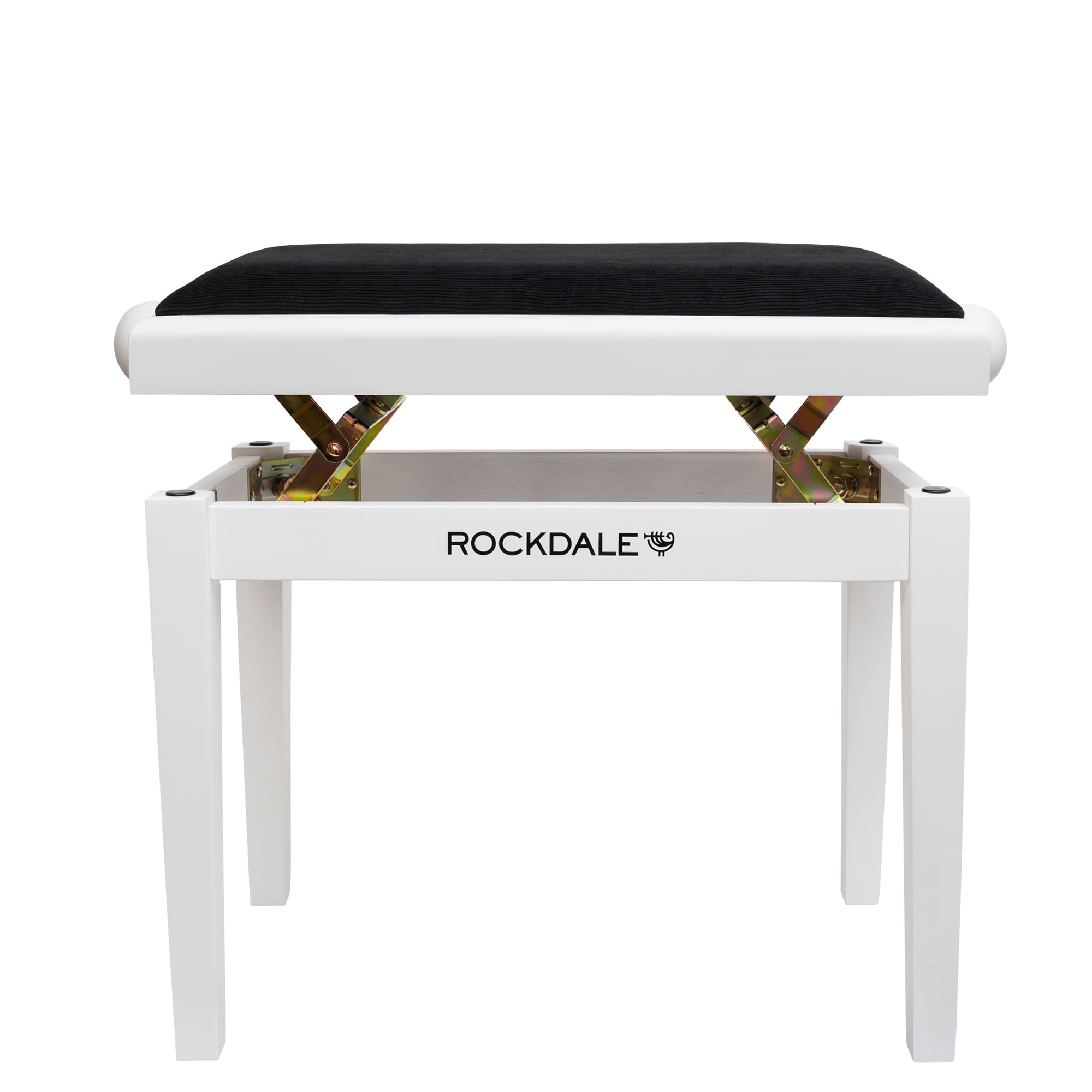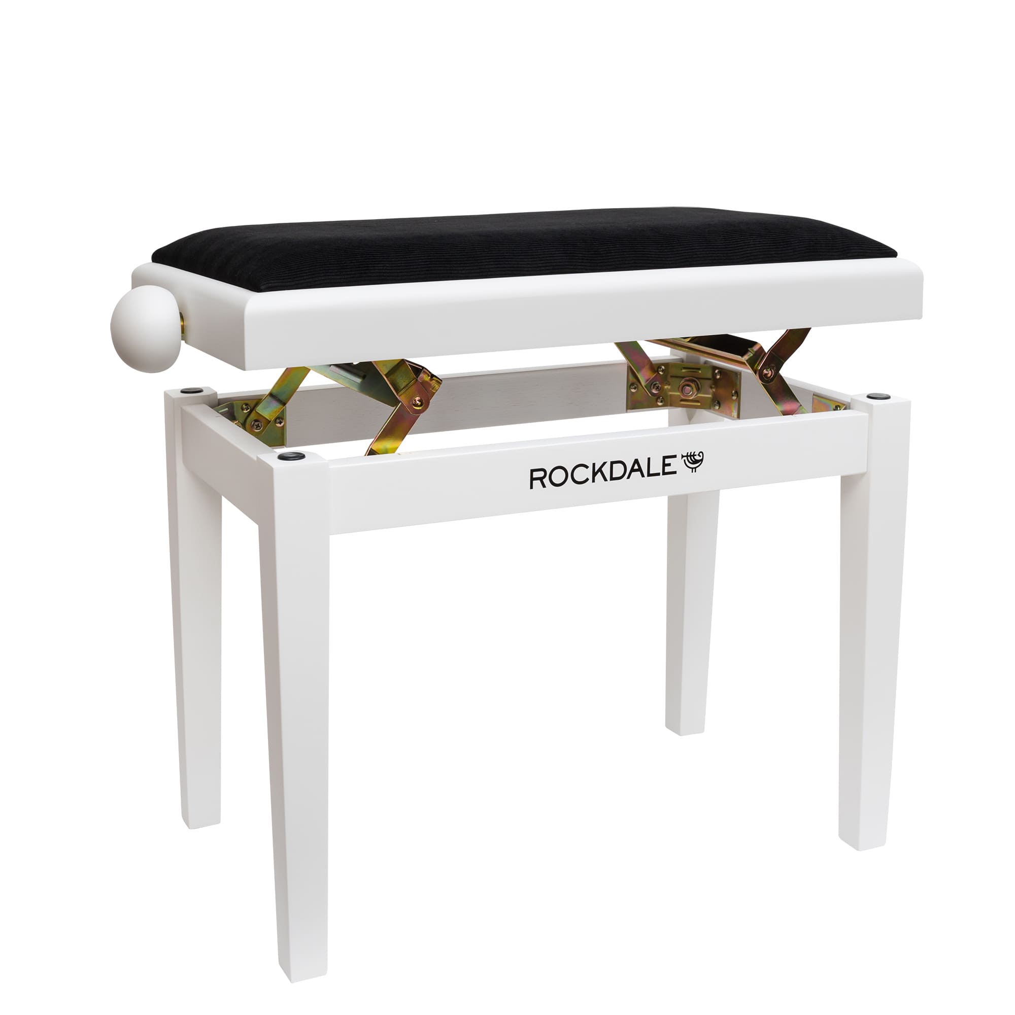 ROCKDALE RHAPSODY 131 SV WHITE BLACK деревянная банкетка с регулировкой высоты от 48 до 57см, матовое покрытие, размер сиденья 56x33 см, цвет корпуса белый, материал сиденья - вельвет в рубчик, цвет сиденья черный