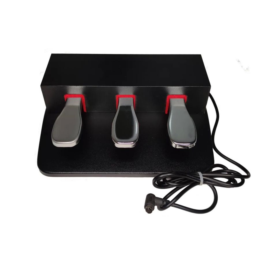 Тройной блок устанавливается непосредственно на пол и предоставляет полный функционал: soft (левая педаль), sostenuto (средняя педаль), sustain (правая педаль).