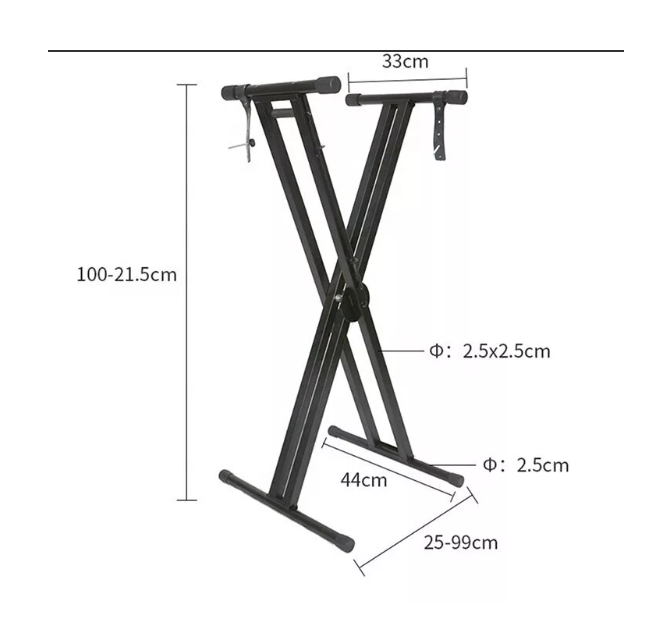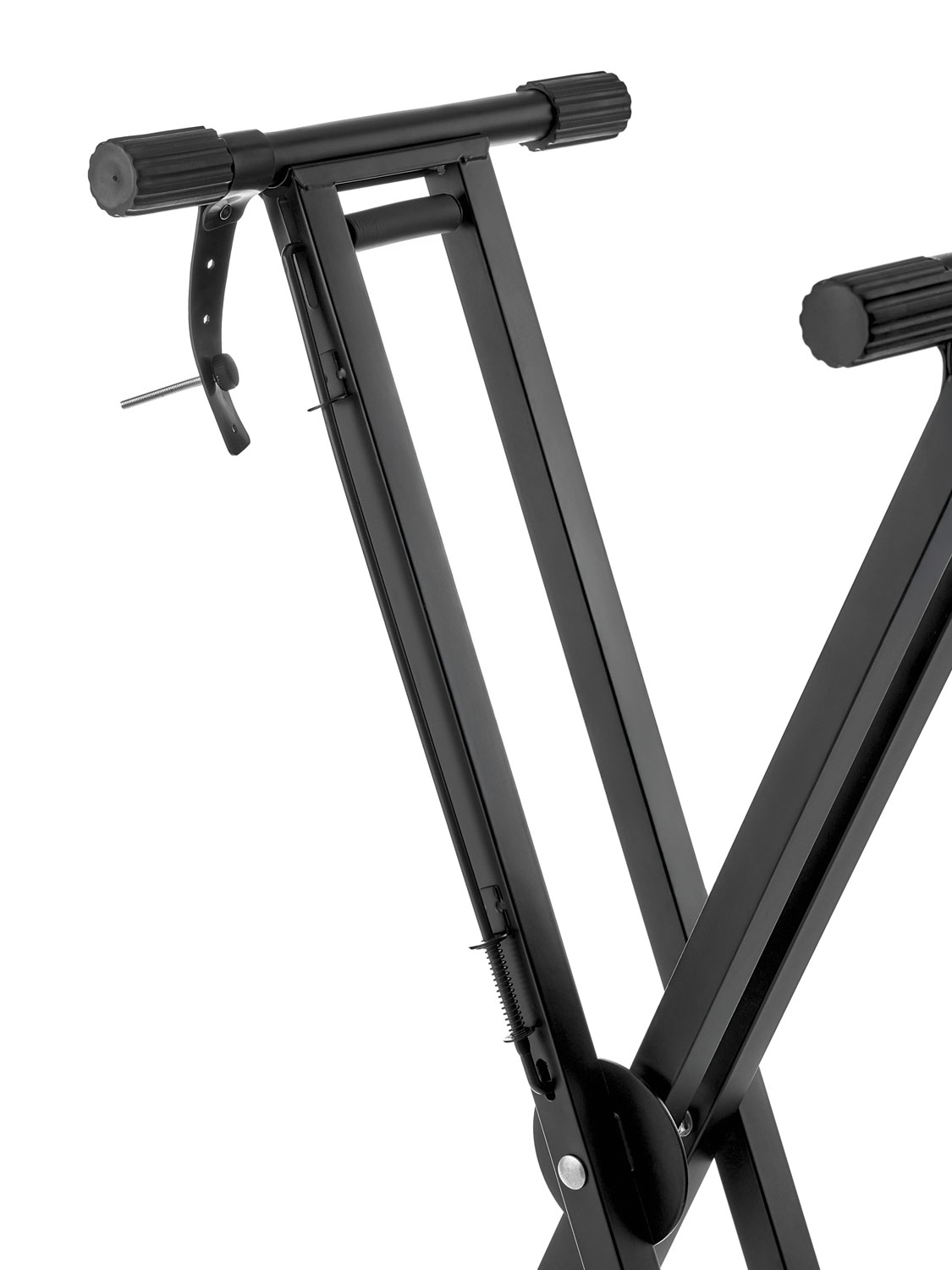 Универсальная Х-образная клавишная стойка для синтезаторов и цифровых пианино, разборная. Стойка имеет шестипозиционную систему регулировки высоты и ширины для настройки необходимого уровня.