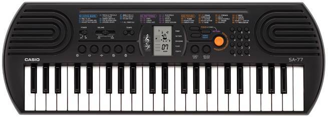 Модель SA-77 с 44 клавишами предлагают всем начинающим уникальные музыкальные возможности. 100 тембров, 50 стилей, встроенные композиции для обучения, новейший звуковой процессор с серьезной для таких синтезаторов 8-ми нотной полифонией, а также ЖК дисплей, помогающий с первых шагов разобраться в 2-х строчной нотной грамоте – все это делает инструмент отличным помощником для начинающего музыканта.