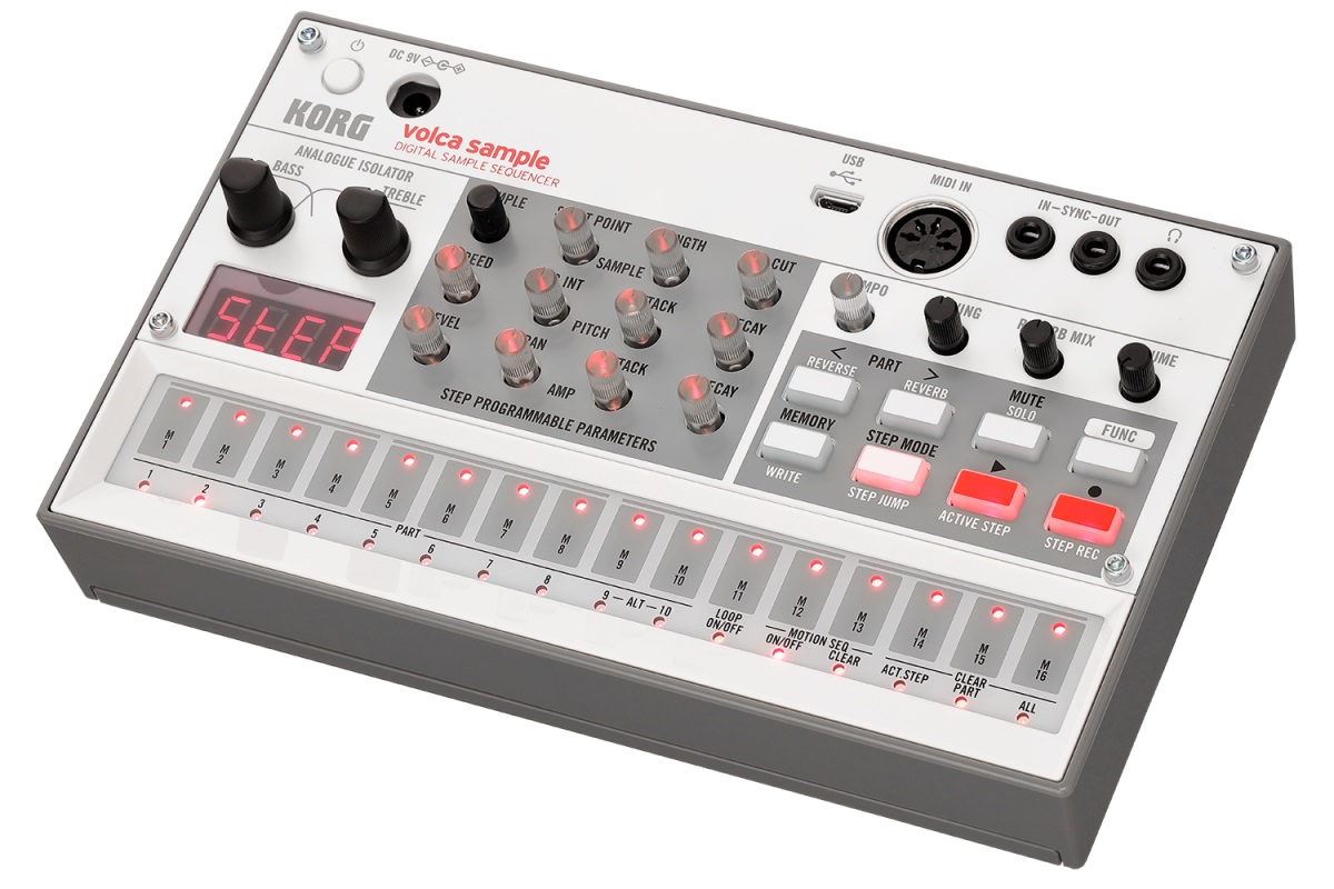 Секвенсор Volca Sample предназначен для того, чтобы редактировать или добавлять новые сэмлы «на лету». Используйте 16 клавиш для интуитивного ввода нот и получайте их зрительное отображение. Вы также сможете записывать свои выступления в реальном времени и создавать/добавлять до 10 паттернов в память прибора.