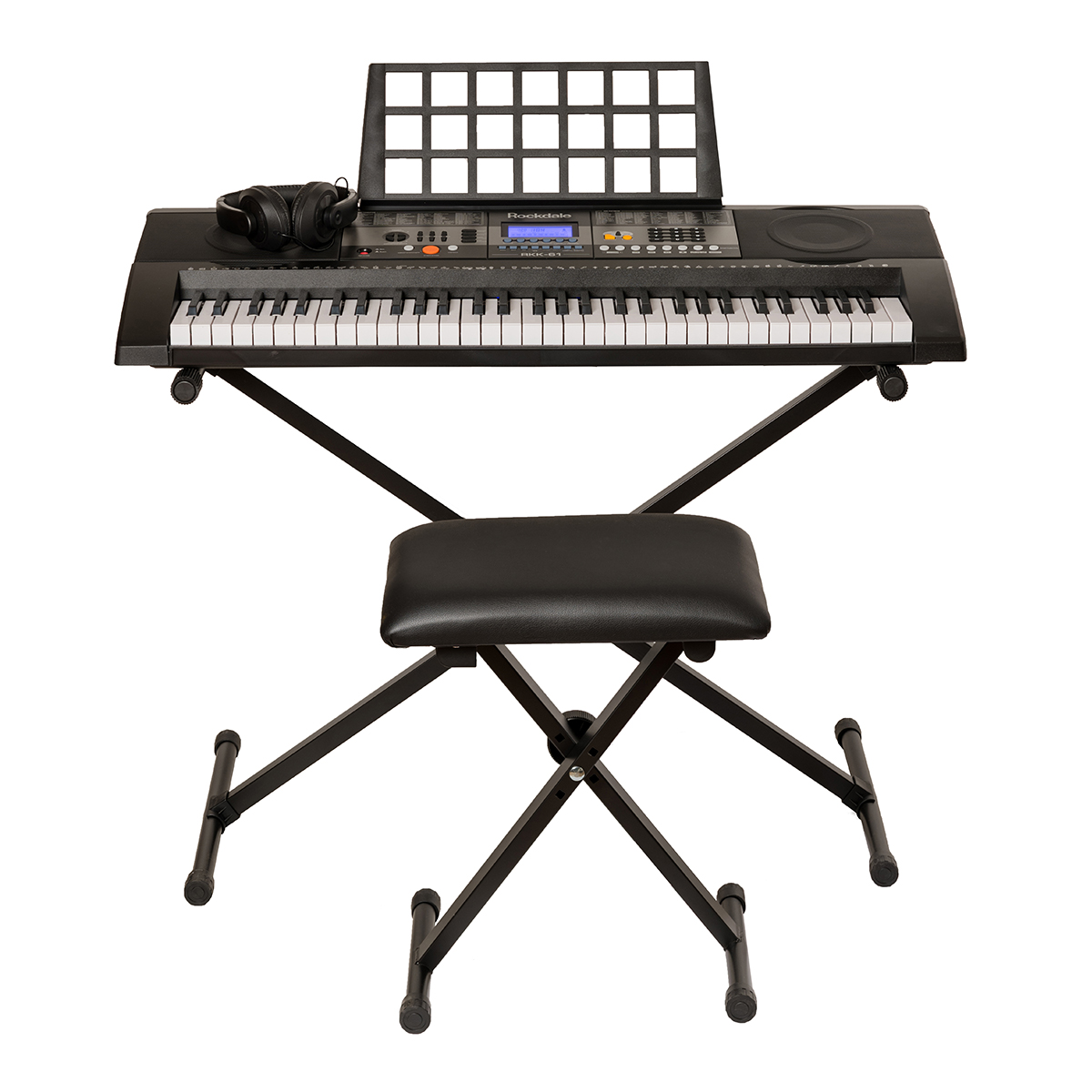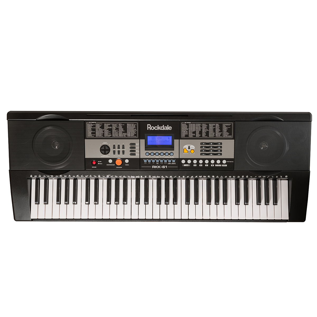 ROCKDALE Keys RKK-61 синтезатор c комплектом аксессуаров: наушники, банкетка и стойка для клавишных инструментов. Черный цвет. 61 клавиша, стандартного размера. Динамическая клавиатура. 200 тембров. 200 стилей. 20 демомелодий. Автоаккомпанемент. LCD дисплей. Метроном. Разделение клавиатуры. Функция записи. Функция обучения. USB проигрыватель. Микрофонный вход. Аудиовход. Аудиовыход.