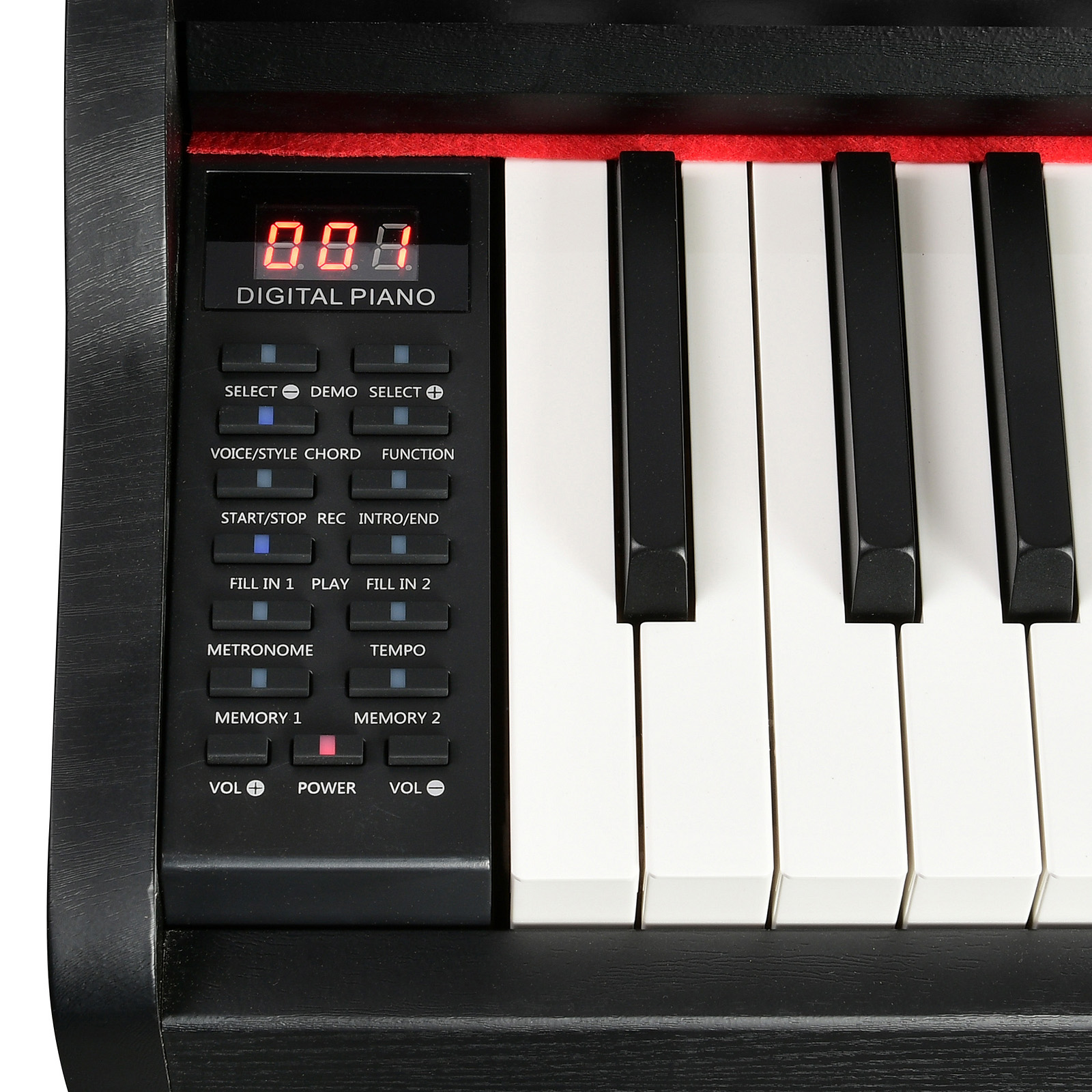 Цифровое пианино EMILY PIANO D-51 BK усилители: Акустические системы: усилитель 2 х 14 Вт, клавиатура: 88 клавиш, молоточковая механика, 3 уровня чувствительности, полифония: 64 голоса, тембры: 8+130 тембров +1 набор перкуссии, функции: хорус, реверберация, 4 демо, разъемы: 2 выхода на наушники, вход для микрофона (гитары), дополнительно: MP3 плеер/рекордер, USB Midi, цвет и отделка: черный