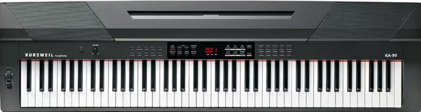 Kurzweil KA-90 - доступное компактное цифровое пианино. Помимо объёмного звучания, модель имеет такие функции, как автоаккомпанемент и возможность записи. KA90 обладает 88 клавишной фортепианной механикой и 20 качественными тембрами, включая тембры рояля. Инструмент имеет все необходимы функции: метроном, возможность деления клавиатуры, наложение тембров, линейный вход и выход, подключение к компьютеру. Воспроизведение звука возможно как через встроенные колонки, так и с помощью подключения двух пар наушников.
