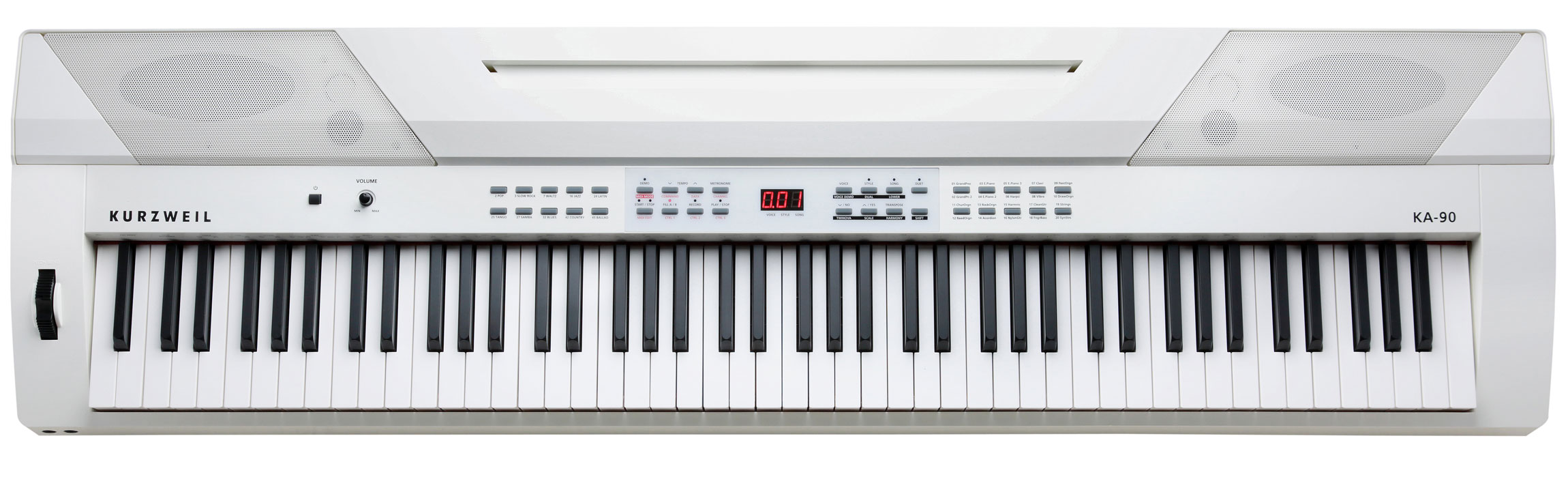Kurzweil KA-90 - доступное компактное цифровое пианино. Помимо объёмного звучания, модель имеет такие функции, как автоаккомпанемент и возможность записи. KA90 обладает 88 клавишной фортепианной механикой и 20 качественными тембрами, включая тембры рояля. Инструмент имеет все необходимы функции: метроном, возможность деления клавиатуры, наложение тембров, линейный вход и выход, подключение к компьютеру. Воспроизведение звука возможно как через встроенные колонки, так и с помощью подключения двух пар наушников.