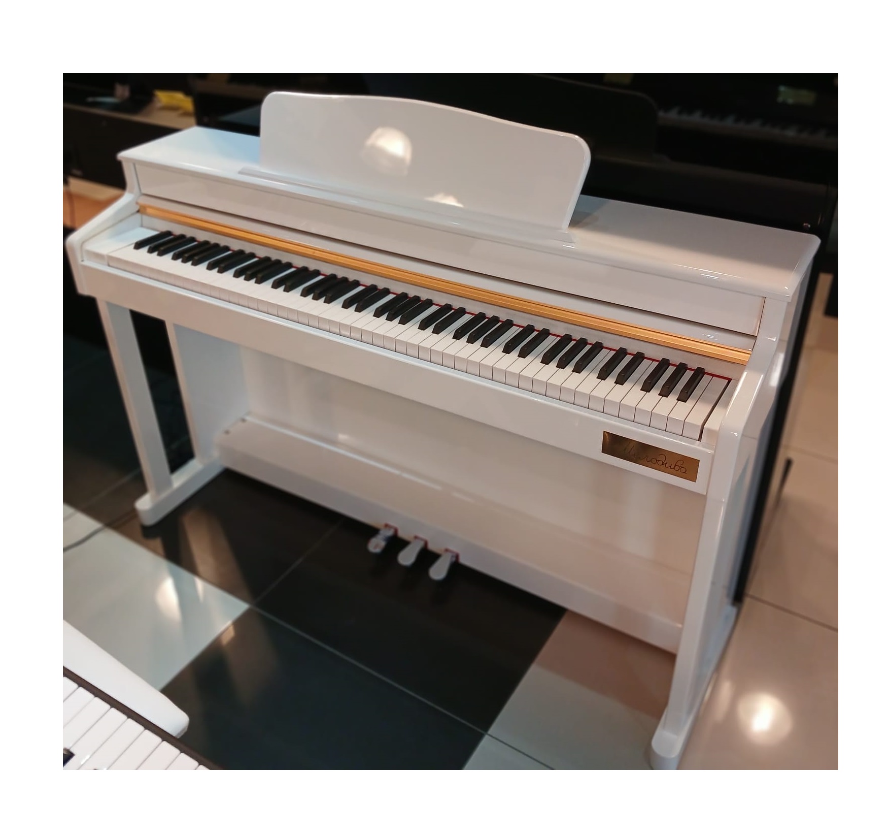 - механизм клавиш при нажатии имитирует звук акустического фортепиано