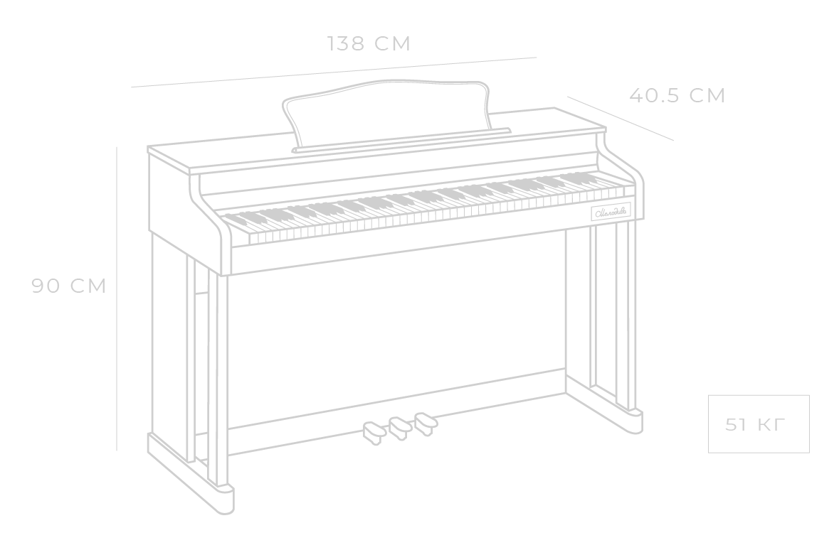 88 полновзвешенных клавиш обладают широким диапазоном от низких до высоких нот