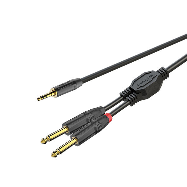 Аудиокабель 5,5mm (2x022mm2), 3,5mm stereo Jack -2x6,3mm mono Jack, 1 м
