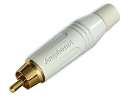 кабельный разъем RCA, металлический корпус, позолоченные контакты, мягкий хвостовик, цвет белый