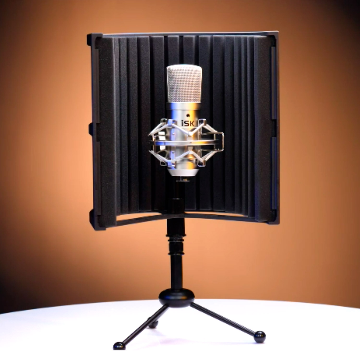 ISK RF-12 – компактный экран для микрофона, который можно разместить как на столе, так и на стойке. В комплект к экрану поставляется устойчивая металлическая подставка типа «тренога» для настольного использования.
