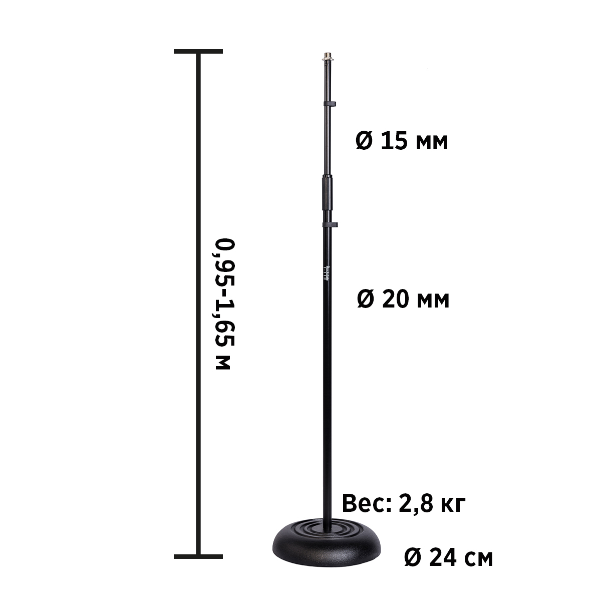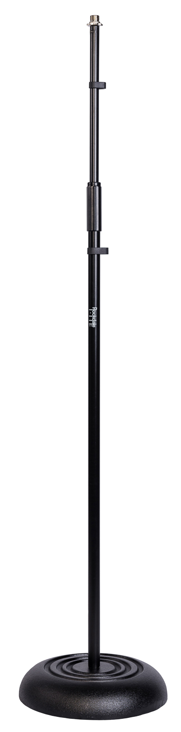 Прямая телескопическая микрофонная стойка на круглом основании, высота 95-165 см. Металл. Цвет черный