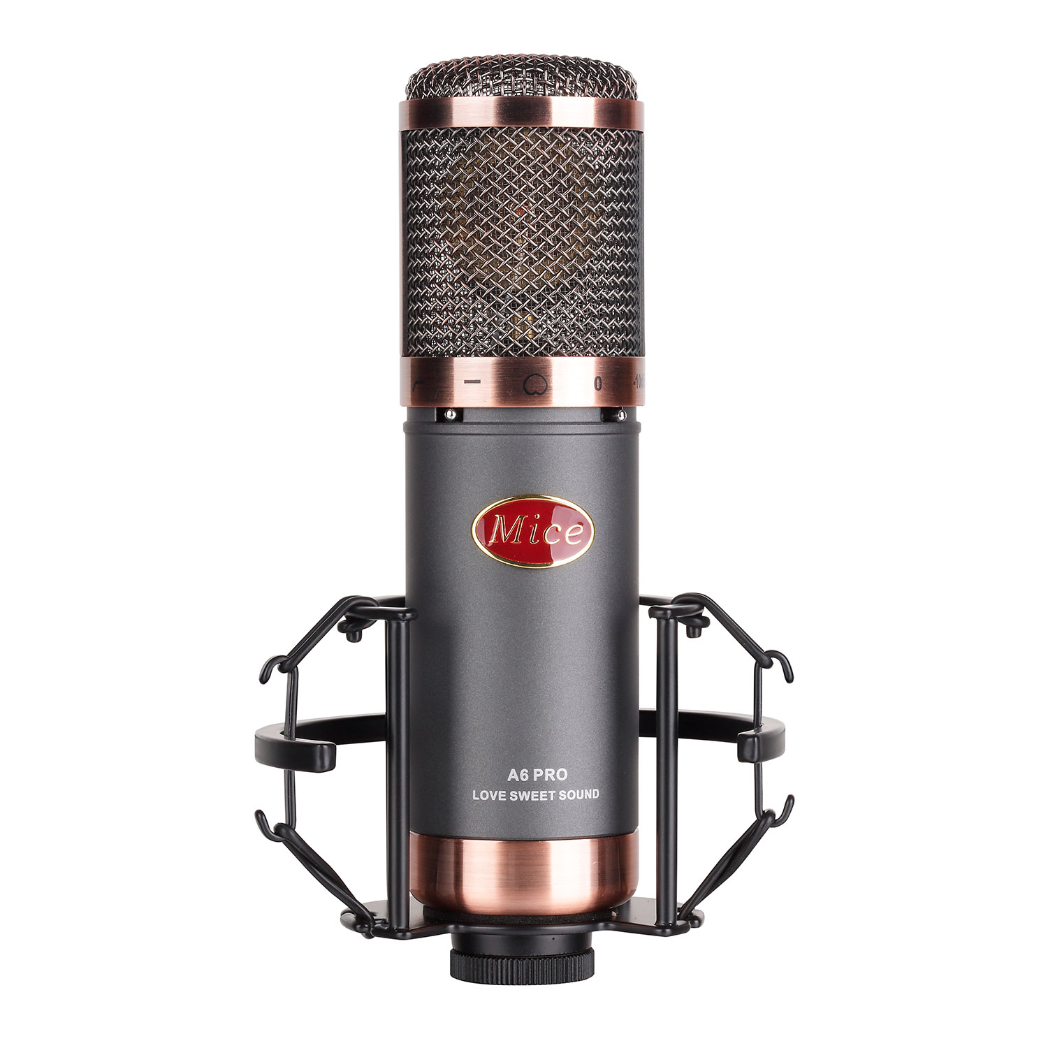 Mice A6 Pro – профессиональный конденсаторный микрофон с кардиоидной диаграммой направленности, собранный с использованием качественных компонентов на печатной плате и позолоченного капсюля. Микрофон характеризуется высокой чувствительностью на выходе, минимальным уровнем собственного шума и широким динамическим диапазоном. A6 Pro идеально подойдет не только для работы в профессиональной студии звукозаписи, но и для подкастов, стримов, трансляций, при работе на телевидении или радио, а так же для записи вокала или инструментов в домашних условиях.
