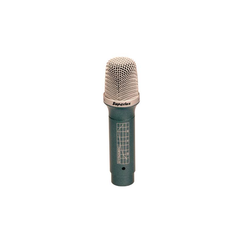 Superlux PRA228A - динамический микрофон для подзвучки малого барабана. Специально скорректированная АЧХ и кардиоидная направленность делает его идеальным выбором для подзвучки инструментов средне-высокого частотного диапазона.