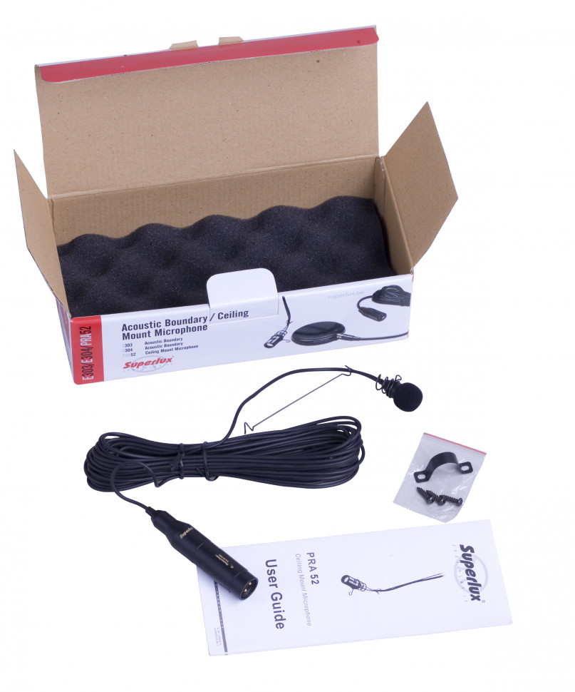 Superlux PRA52 – это конденсаторный микрофон для потолочной установки. Благодаря длинному кабелю и стальному пружинному держателю, его можно установить в оптимальное положение, где он не будет бросаться в глаза.