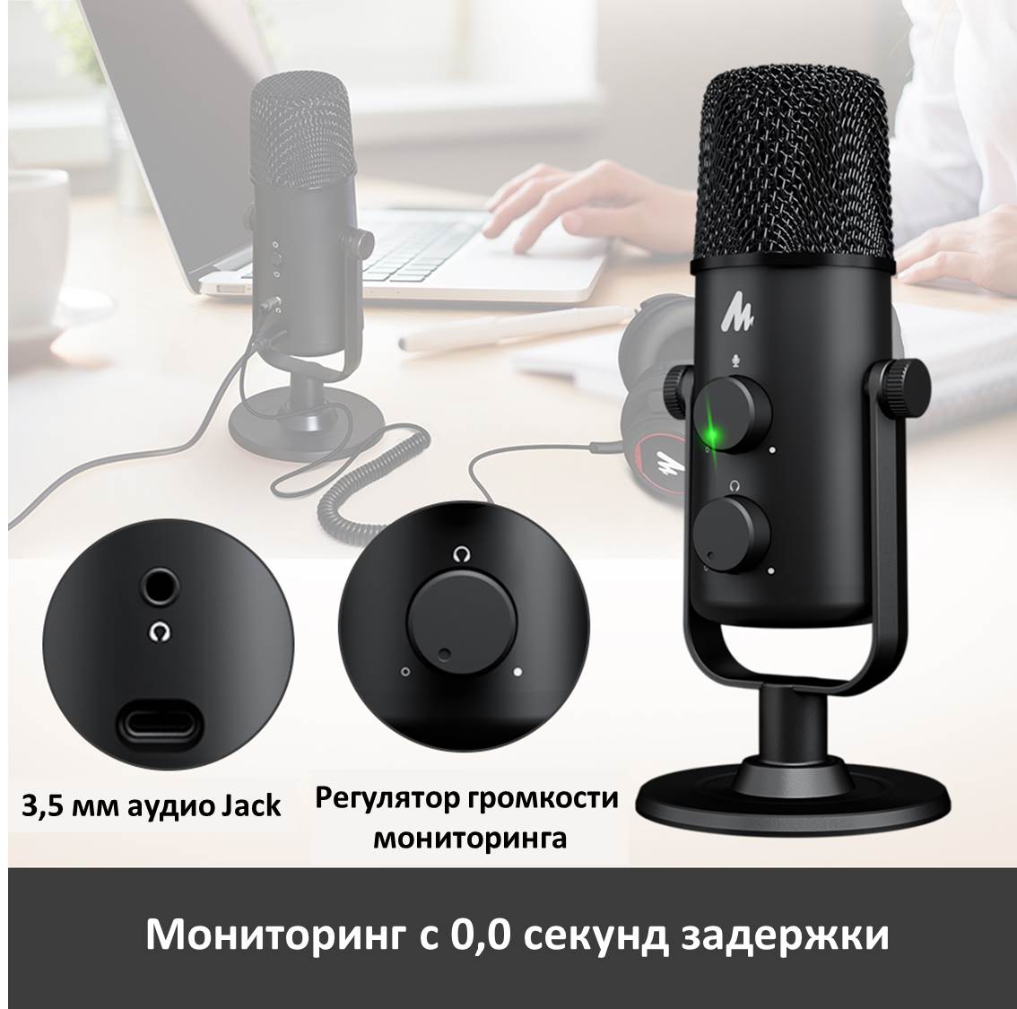 Maono AU-903 – это USB-микрофон с конденсаторным капсюлем студийного качества. Модель идеально подходит для подкастинга, стриминга, игр, ASMR, а также для решения любых задач, связанных с высококачественной записью голоса.