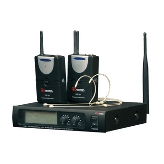 ECO by VOLTA U-2H (614.15/520.10) Радиосистема начального уровня с двумя головными микрофонами UHF диапазона с фиксированной частотой в пластиковой кейсе. True Diversity, Plug&play.