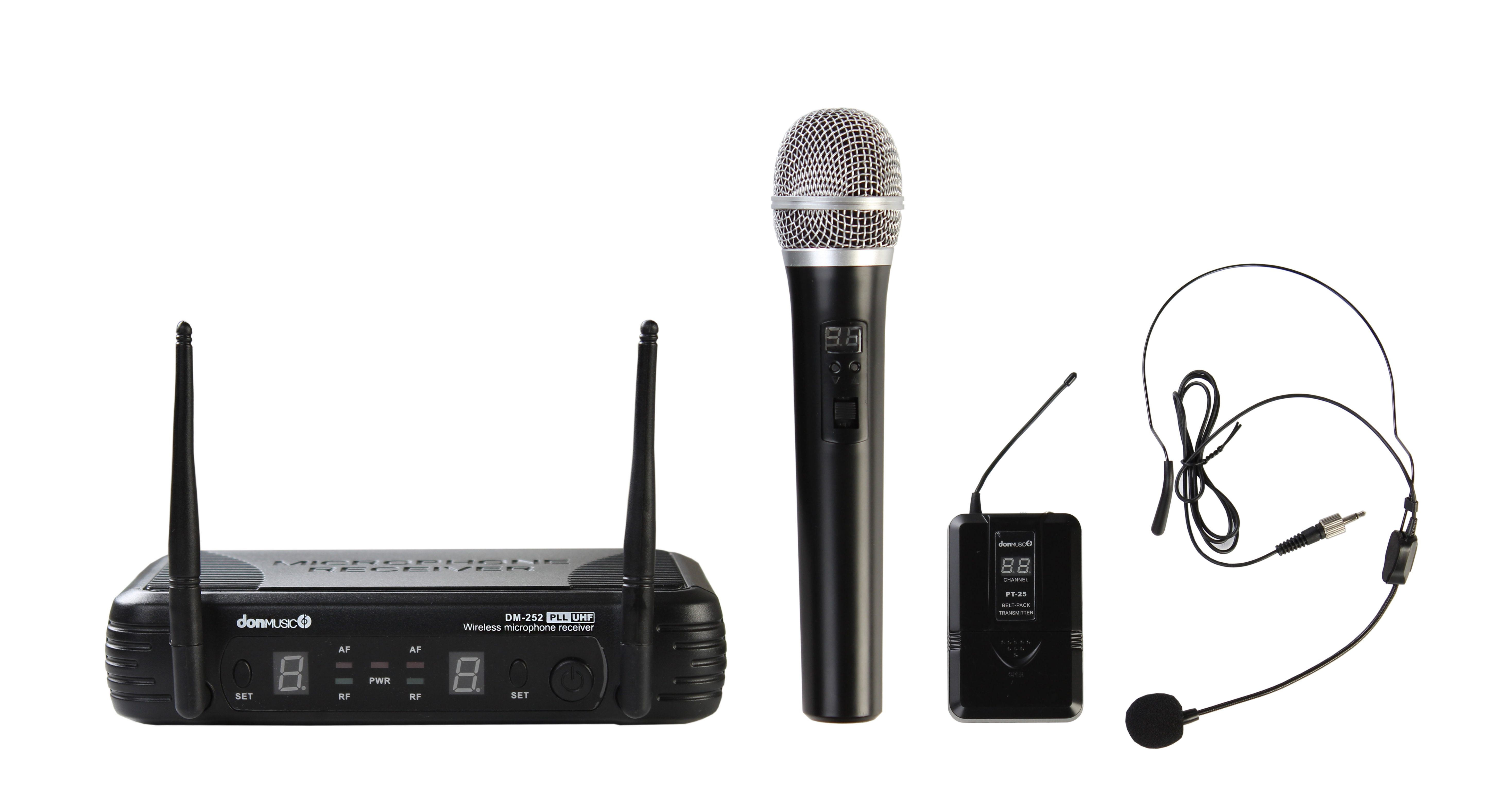Радиосистема с 1 ручным микрофоном и головной гарнитурой.