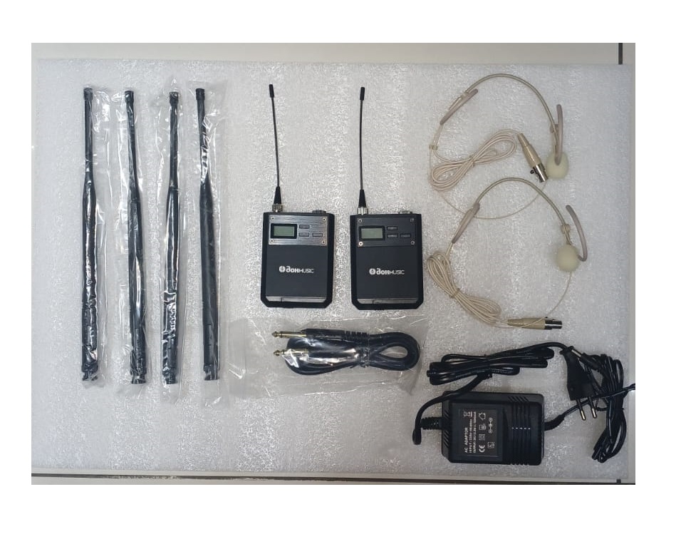 Частотный диапазон UHF 650-750 Мгц. В комплекте две гарнитуры телесного цвета. Тип микрофона - динамический, частотная характеристика 20-18 000 Гц. Отношение сигнал шум ≥ 110dB. Максимальное количество каналов 200. Принцип работы приёмного устройства True Diversity, PLL-synthesis. Функция сканирования частотного диапазона. Съемные антены. Возможность одновременной работы до 26 передатчиков в одной системе. Приемник в исполнении 19', передатчик в металлическом корпусе. LCD-дисплей. Питание передатчика 2х1,5В АА.