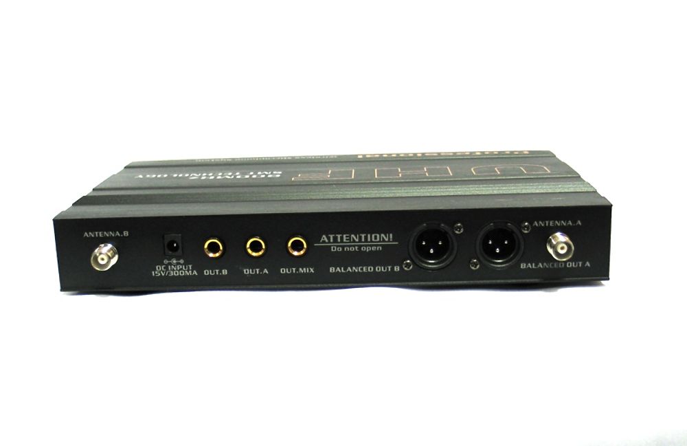 Недорогая профессиональная двухмикрофонная UHF радиосистема 800 мГц диапазона, состоящая из двух ручных микрофонов-передатчиков и приёмника (база). Стабильный приём до 60 метров. Приёмник выполнен в металлическом корпусе. Радиомикрофон (беспроводной микрофон) отлично подойдет для небольших клубов и кафе, презентаций, конференций, концертной сцены и студенческих мероприятий. Питается микрофон от 2х пальчиковых (АА) батареек или аккумуляторов, что создает существенную экономию на элементах питания.Характеристики