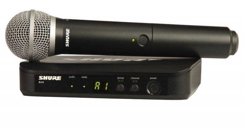 Беспроводная радиосистема с ручным микрофоном.