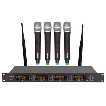 VOLTA US-4 (725.80/710.20/629.40/614.15) Радиосистема с четырьмя ручными микрофонами UHF диапазона с фиксированной частотой. LCD-дисплей, True Diversity, Plug&play.
