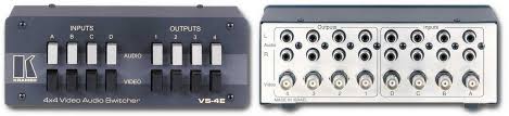 Kramer VS-4E Механический коммутатор видео\стерио аудио,один из 4 входов коммутируется на один из 4 выходов ,аудио можно коммутировать отдельно от видео,475 Мгц