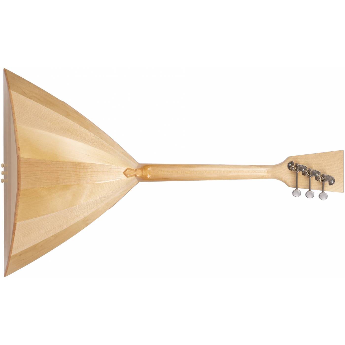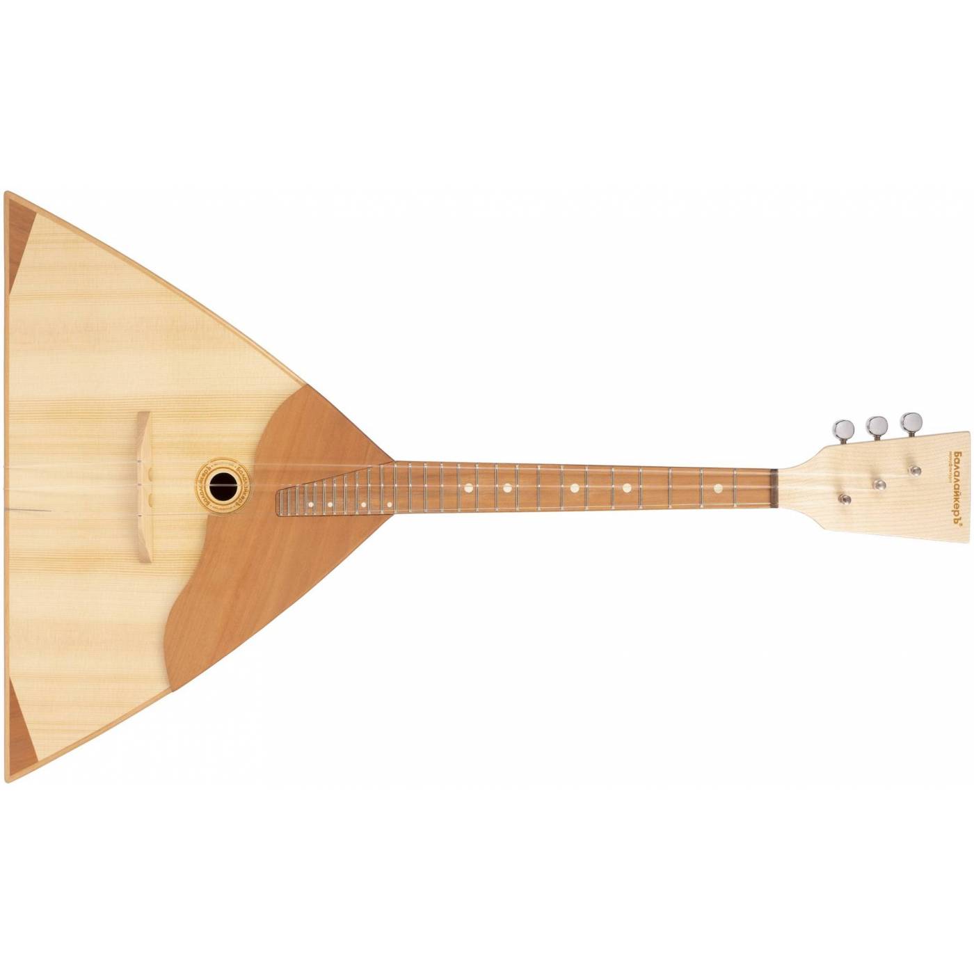 Корпус из семи наборных клёпок выполнен по исторической технологии «вязки в ручку». Гриф кленовый с крепкой грушёвой накладкой. Мензура академическая 27 ладов размером 435 мм. Лопатка грифа кленовая. Колковая система традиционная цельнопланочная открытого типа. Лады выполнены из нейзильбера. Дека выполнена из российской резонансной ели. Панцирь выполнен из вишни. Инструмент оснащён учебным набором струн. Декор выполнен в стилистике старинных артельных балалаек.