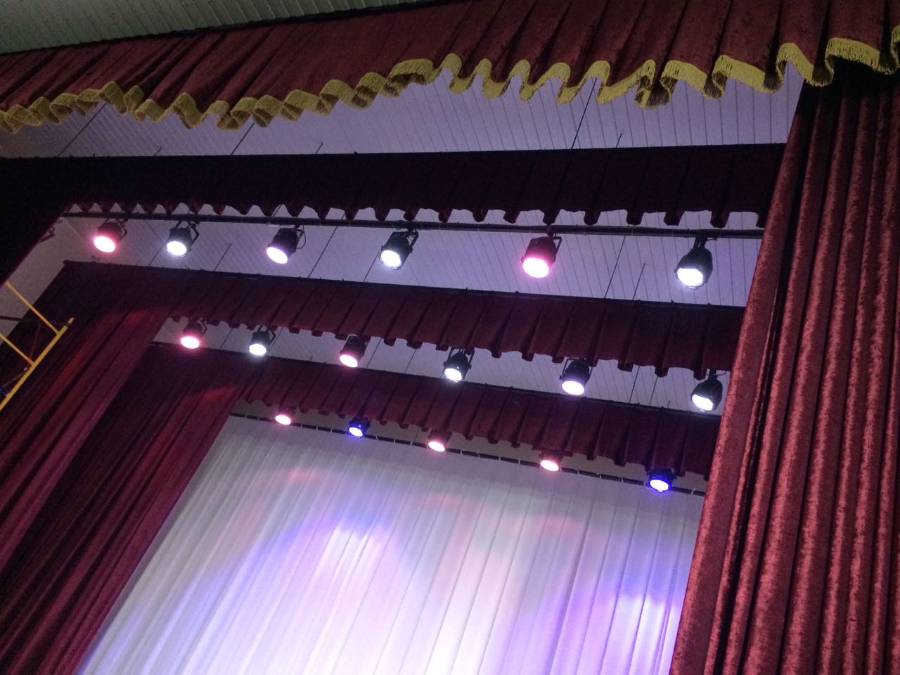 Антрактно-раздвижной занавес с золотой бахромой (велюр на подкладе с противопожарной обработкой) — 1 компл.