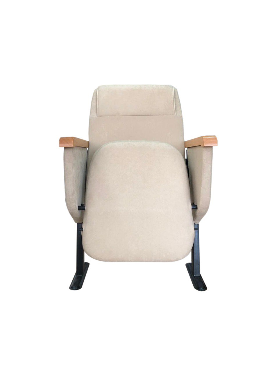 Кресло с креплением к полу, в ткани, с подлокотниками, сиденье откидное, мягкий подголовник.