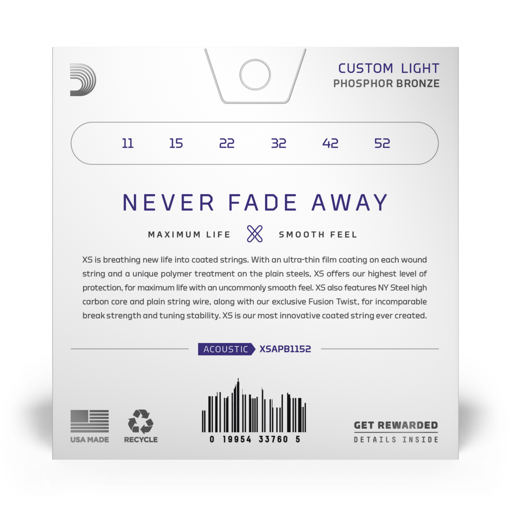 - покрытие струн с обмоткой нового поколения, толщина которого в 10 раз меньше толщины человеческого волоса, предотвращает их загрязнение в процессе игры. Играй больше - меня струны реже, играй больше - реже настраивай гитару. На ощупь струны серии XS с покрытием более гладкие, что положительно влияет на тактильные ощущения во время игры на инструменте.