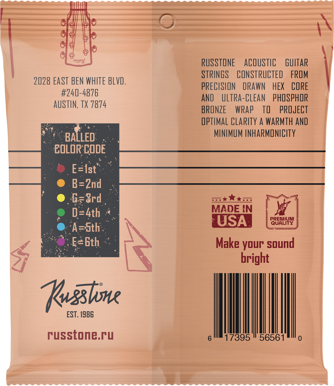 Струны Russtone APB для акустических гитар изготавливаются из шестигранного керна с обмоткой из сверхчистого сплава фосфора и бронзы, что позволяет извлекать оптимально яркий звук с теплым оттенком и минимумом нежелательных обертонов.