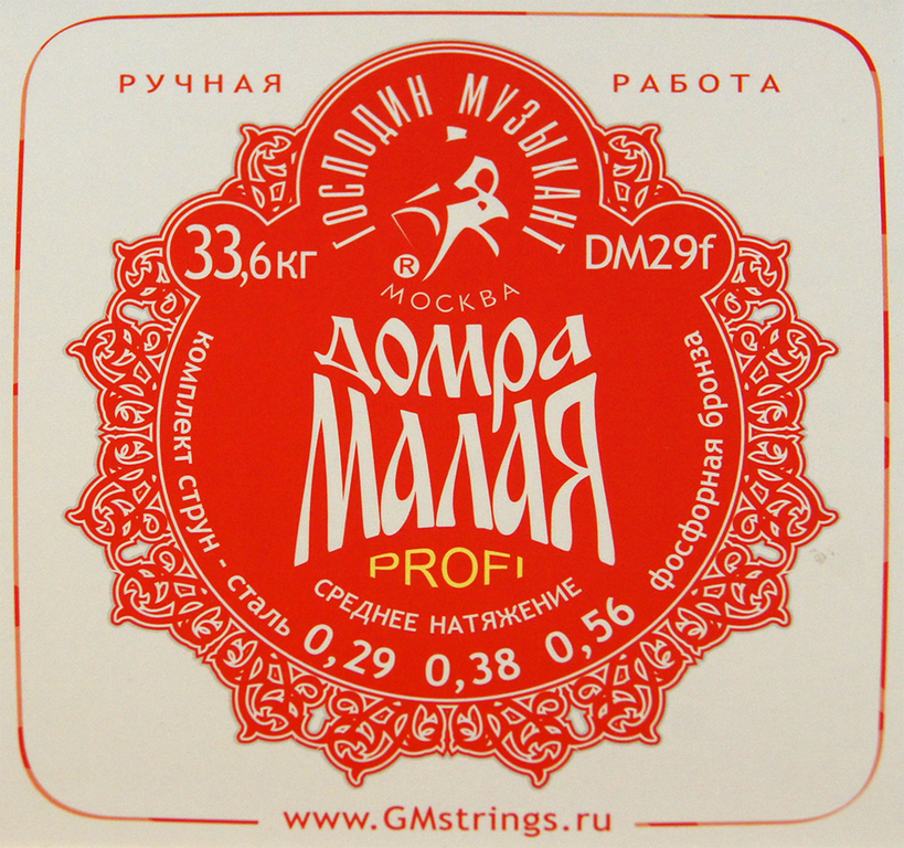 Комплект струн для Домры Малой (Сталь+ФБ). Струны сольного уровня. Идеальны для записи. Яркое звучание, длительный срок службы. Струны Ре и Ля — сталь, струна Ми — оплетка из фосфорной бронзы на стальном профильном керне. Среднее натяжение — 33.6кг (для мензуры 389мм). D/Ре Сталь, диаметр 0.29мм, натяжение 11.0кг. А/Ля Сталь, диаметр 0.38мм, натяжение 10.6кг. Е/Ми Сталь/фосфорная бронза, диаметр 0.56мм, натяжение 12.0кг.