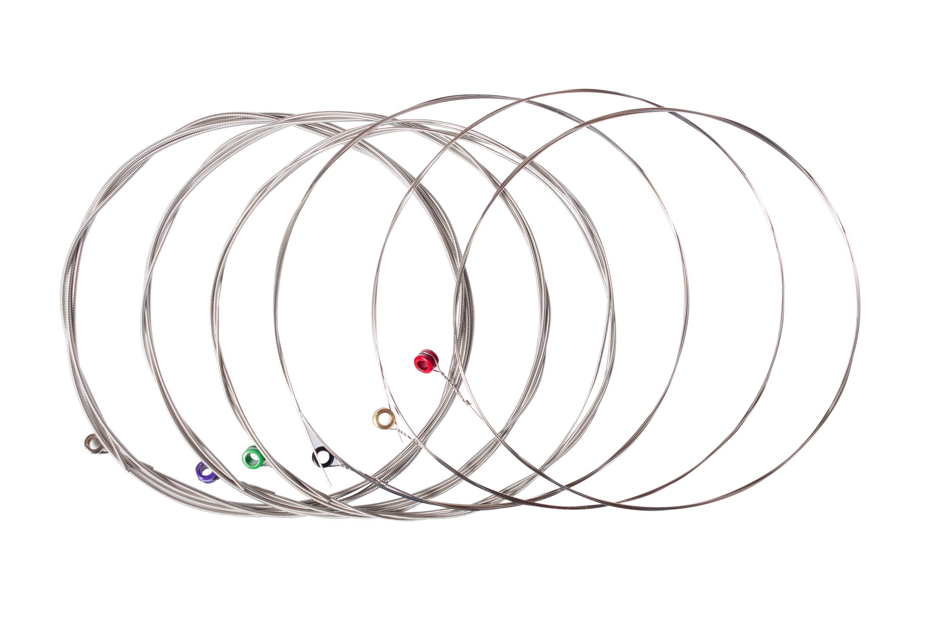 Цветная бобышка в основании струны соответствует номеру струны.