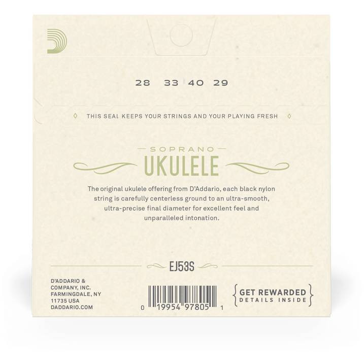 Струны D'Addario EJ53S разработаны для применения на всех гавайских укулеле размера сопрано. Комплект оптимизирован для стандартной настройки GCEA.
