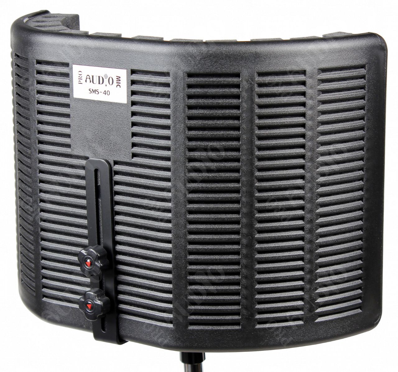 PROAUDIO SMS-40 имеет 3-слойную конструкцию. Первый слой представляет собой перфорированную панель из композитного материала, предназначенный для отражения и рассеивания звуковых волн. Второй слой – поглощающий, сделан из специальной шерсти и 3-й внутренний слой – поролон. Такой “сэндвич” позволяет избежать попадание отраженных звуковых волн на заднюю и боковые поверхности микрофона.