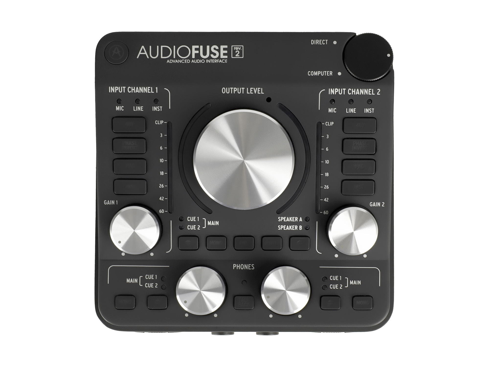 Премиальный Аудиоинтерфейс USB [811001] Arturia [Audiofuse Rev2] 24бит/192кГц, 14x14 (аналоговых 4x4) входов/выходов, 2xXLR микрофонных входа, встроенный микрофон, 2х1/4" TRS Jack выхода на наушники, S/PDIF, Word Clock, ADAT, MIDI, USB-концентратор на 3 порта/