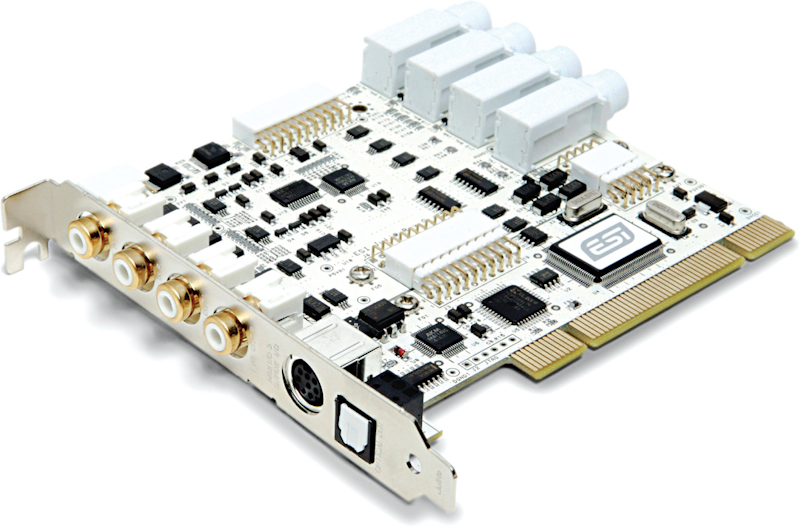 ESI Juli@: Звуковая плата Аудиоинтерфейс PCI 4х4, 4 входа (2 аналоговых, 2 цифровых), 6 выходов (2 аналоговых, 4 цифровых), S/PDIF (opt/coax), MIDI. 24-бит/192 кГц. Частотный диапазон: 20 Гц - 21 кГц, +/- 0.5 дБ.