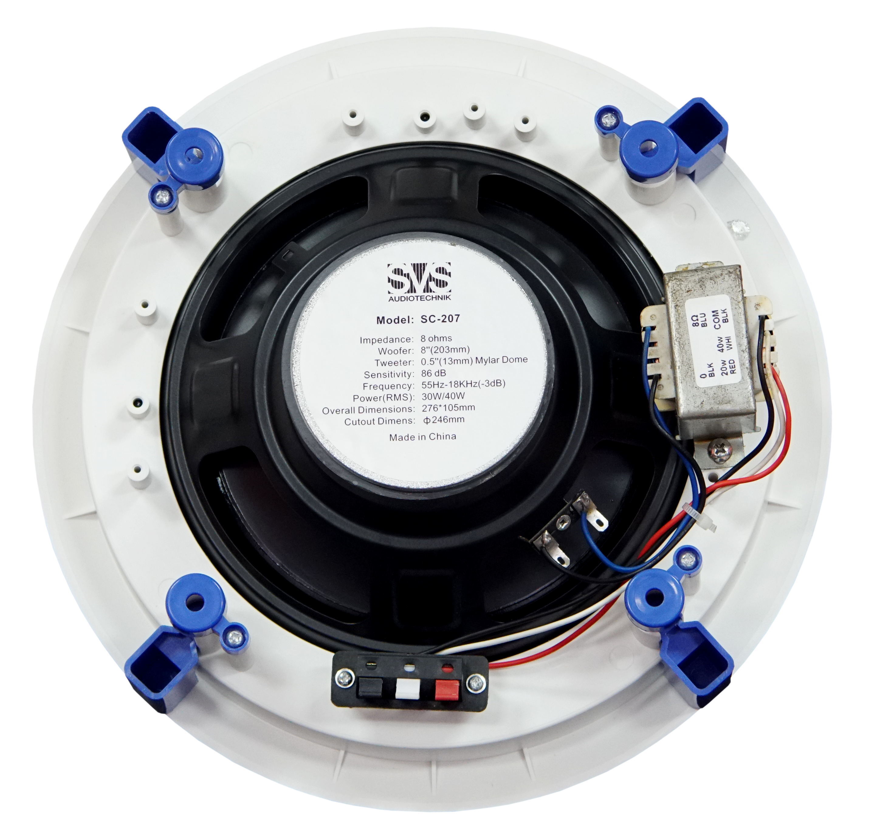 Громкоговоритель потолочный 8", 20/40 Вт, 8 Ом, 70/100В, 88дБ, 55-18000Гц, монтажное отверстие диам 246мм, габариты: диаметр 276мм, высота 105мм