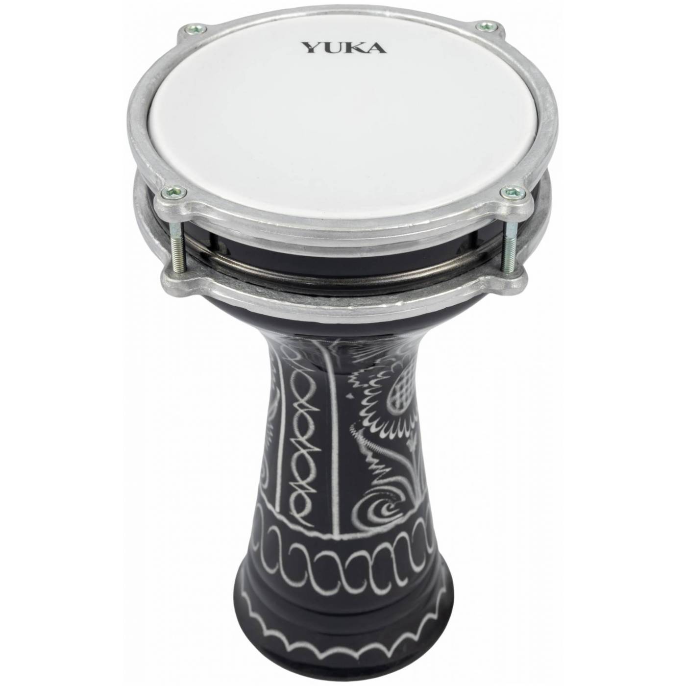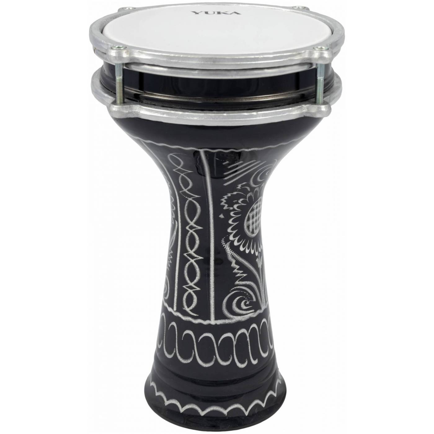 YUKA DRBTG6-12 Турецкая дарбука сделана из алюминия и имеет мембрану из пластика, в связи с чем она имеет легкий вес и позволяет использовать барабан на улице, не боясь дождя и даже снега. Таким образом, эта дарбука – идеальный походный вариант обладающий полным пространным звуком и легкостью конструкции. А корпус с выкованым вручную арабским рисунком, придает инструменту особый вид.Технические характеристики: