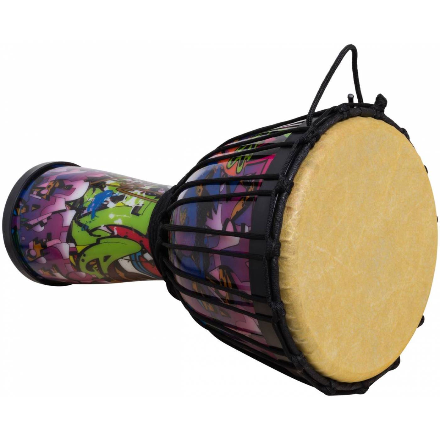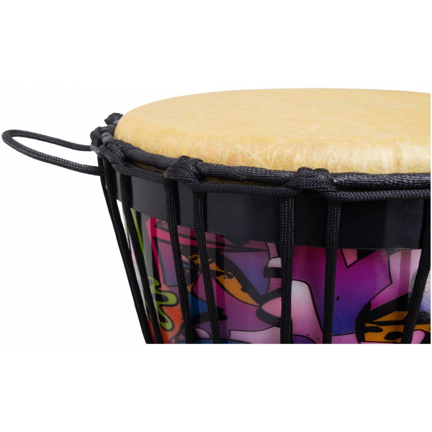 TERRIS DPR-08 Black - Джембе размера 08" х 16" из пластика с синтетической мембраной и ярким дизайном, навеянным HIP-HOP культурой. Модель TERRIS DPR-08 Black также декорирована плетенными нитями, имитирующими веревочную настройку.