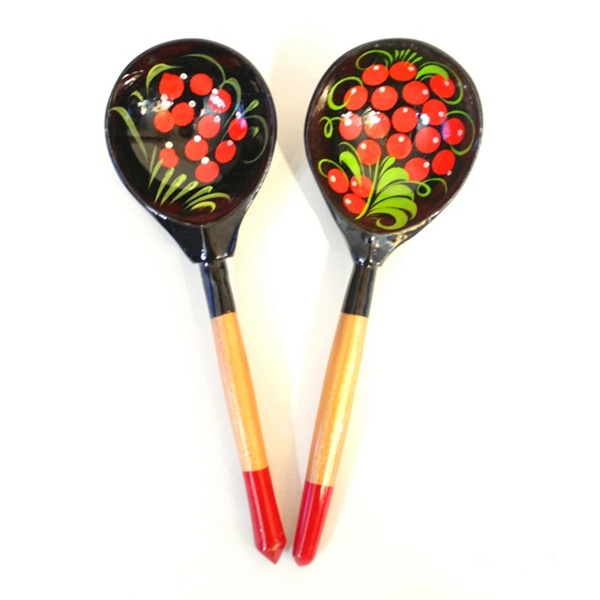 LHL6501 Деревянная ложка полубаская, роспись "Чернушка", Хохлома