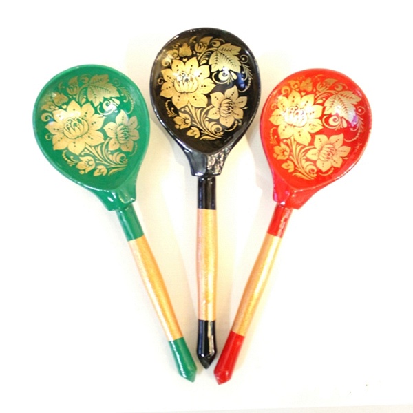 LHL7101 Деревянная ложка полубаская, роспись "Золото", Хохлома