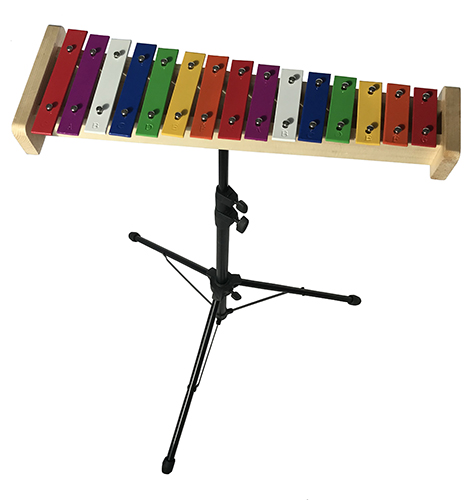 Металлофон детский DEKKO TG-15-1 диатонический, 15 нот, диапазон G5-G7, на деревянной основе, разноцветные пластины, со стойкой