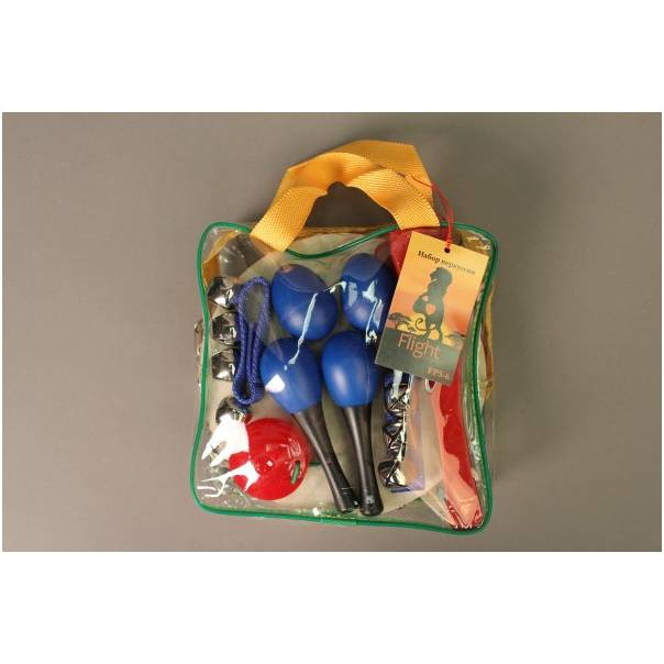 Набор упакован в прозрачную сумочку и станет отличным подарком для тех, кто неравнодушен к музыке, а также подойдет детям в качестве первого знакомства с музыкальными инструментами.