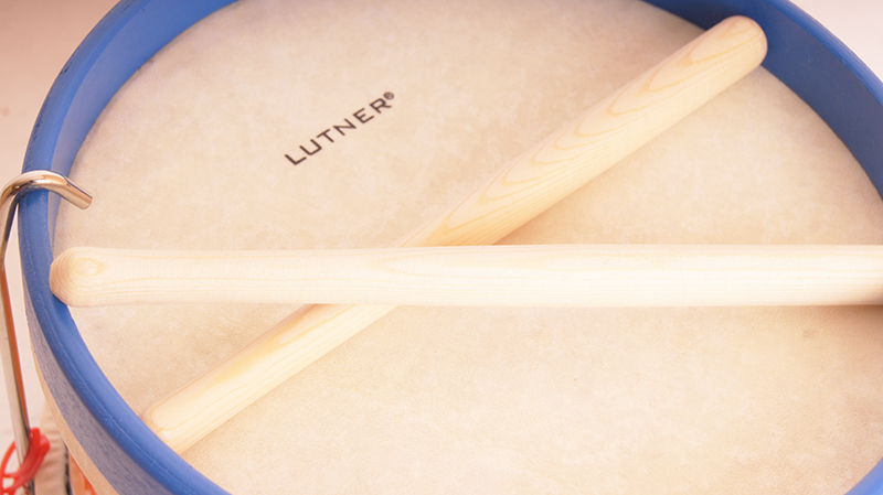 Детский барабан сине-белый диаметр 22см