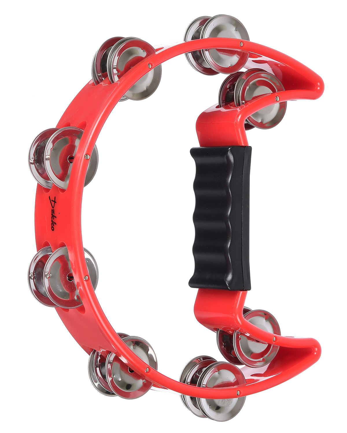 Тамбурин DEKKO TX9-16 RD в форме полумесяца, с ручкой, два ряда тарелочек, корпус-пластик, цвет - КРАСНЫЙ