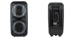 Динамик - 8" 2 шт. Выходная мощность: RMS 30 Ватт; Пиковая 300 Ватт. Встроенная батарея 4500 mAh (до 5 часов работы). Разъемы: USB, SD, microSD, Jack 6.3 мм (микрофон, гитара) 2 шт., Audio input 2х канальный. Опции: Bluetooth, внешний накопитель, Aux, FM. Габариты: ШВГ-34*65*32 см. В комплекте: радиомикрофон ручной 2 ш.; пульт дистанционного управления, кабель питания 220V, кабель AUX