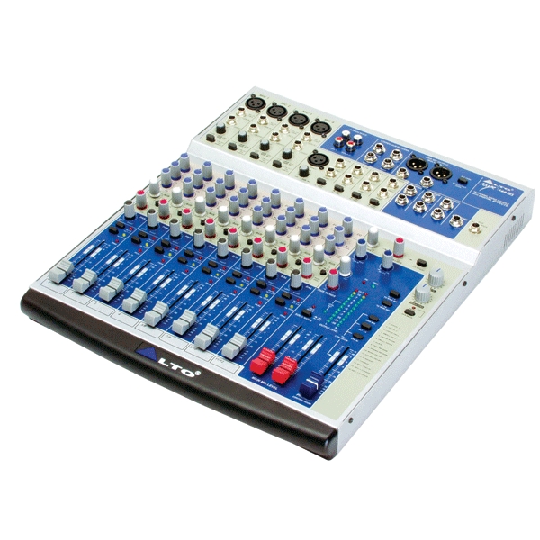 Аудио микшер, имеет четыре моноканала, один универсальный, четыре стереоканала и одну шину посыла на эффекты. Каждый моноканал содержит микрофонный вход (симметричный XLR, схема на дискретных элементах), линейный вход (симметричный джек), регулятор чувствительности, трехполосный эквалайзер, регулятор уровня посыла, регулятор панорамы, ползунковый фейдер уровня и пиковый светодиодный индикатор. Универсальный вход содержит микрофонный вход (симметричный XLR, схема на дискретных элементах), линейный стерео вход (не симметричный джек х2), регулятор чувствительности, трехполосный эквалайзер, регулятор уровня посыла, регулятор панорамы, ползунковый фейдер уровня и пиковый светодиодный индикатор.Фантомное питание (+48 В) включается для всех микрофонных входов сразу. Каждый стереоканал имеет два линейных входа (джеки), трехполосный эквалайзер, регулятор уровня посыла, регулятор баланса, ползунковый фейдер уровня и пиковый светодиодный индикатор. Шина посыла на внешний эффект (после фейдера) имеет моновыход (джек). Ес