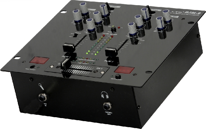 Двухканальный DJ стерео микшер. На каждом канале есть фейдер уровня, регуляторы НЧ, ВЧ, чувствительности, переключатель входов Phono/Line (разъемы RCA). Микрофонный канал (вход – симметричный, & #188 джек) - регуляторы чувствительности и уровня. Полный набор функций включает в себя заменяемый кроссфейдер с переключаемым законом работы, включаемый TalkOver (-15 дБ), бит-метр с цифровым индикатором на каждом канале, светодиодные 7-ми сегментные индикаторы разности темпа и бит-синхронности. Есть кнопки Beat Assist. Два 10-ти сегментных индикатора переключаются между отображением уровня выхода или входов (PFL). Секция контроля содержит регуляторы уровня выхода на наушники (стерео & #188 джек) и баланса каналов. Выходы – запаралелленые разъемы RCA – на усилитель и на запись. Корпус имеет настольно – полурэковое исполнение.